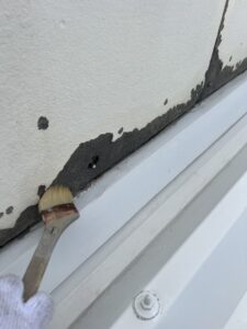 ■外壁の剥がれ補修 → プライマー処理 + 弾性パテで補修