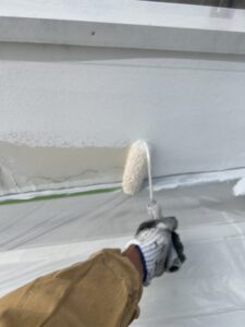 下塗りが終わると、外壁全体が白くなります。